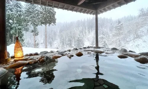 Stepping foot in Ginzan Onsen feels like traveling back in time to the Taisho period or straight into a scene from Hayao Miyazaki’s Ghibli masterpiece, “Spirited Away.” Nestled in the mountains of Yamagata Prefecture, the town is characterized by its traditional architecture, particularly memorable when winter’s heavy snowfall clings to the rooftops.